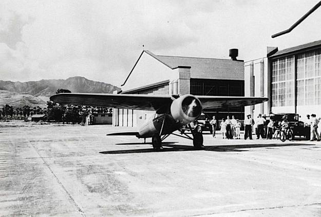 Previous Image Next Image 10-625×423-1 Amelia Earhart’s historic flight takes off from Wheeler Field, Honolulu on Jan 11, 1935 at 4:40pm and sets another world record– the first solo flight from Hawaii to the Mainland. (Hawai’i Aviation Archives)