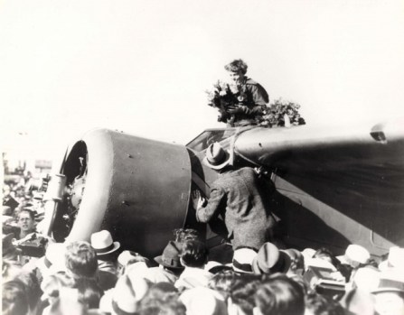 Previous Image Next Image 11-640×501-1 In contrast to the unheralded departure from Wheeler, 5,000 people lined the field at Oakland Airport in a tumultuous reception. (Hawaii Aviation Archives)