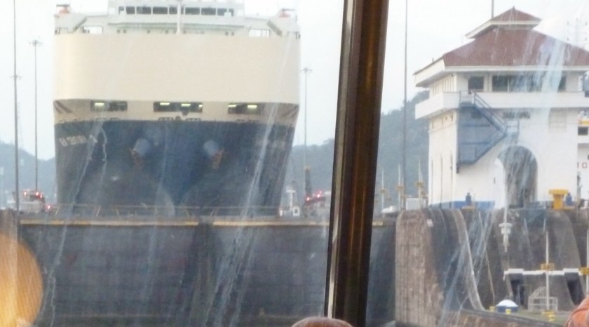 Next Image view of the locks from our dinner table Exiting the lock with another ship right behind us. This was our view in the main dining room!