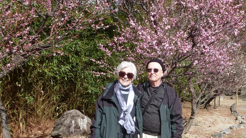 Previous Image Next Image p1220994-800×451 Rog and Sandy at the Shinto Temple on the Osaka Castle grounds with the Plum Trees in bloom. Yeah right, they were just transplanted from the hothouse!
