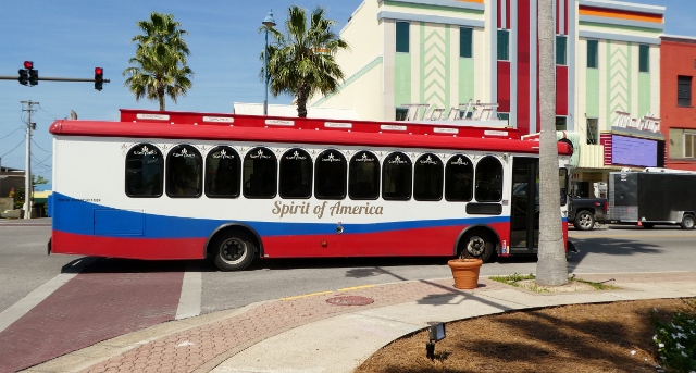 We were driving, but the local bus service looks quite charming!!! That art Deco building behind the trolley is the Martin Theater.