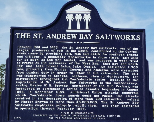 During the Civil War (1861-1865) the St Andrew saltworks provided not only salt, but also preservative for fish and cattle sent to Southern troops and citizens. The saltworks were subject to frequent attack by Union troops!!!