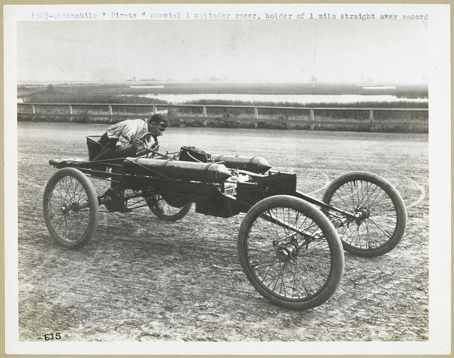 Well, it was Ransom E. Olds who, in the late 1890s, first started timed runs on the beaches of Ormond and Daytona. Then, in April of 1902, he took his model Pirate to Ormond Beach to participate in the first unofficial speed trials. Pirate was the first car of the event. And then, in 1903, when Olds and Alexander Winton competed, history was made. The Winton Bullet won the Challenge Cup against the Olds Pirate by two-tenths of a second! American records were set that year and the world took notice. The following year more records were set. And in 1906, the Stanley Rocket Racer, driven by dare-devil Fred Marriott, set the mark that became the most famous land speed record in Ormond Beach. The incredible speed of 127.659 mph held for four years—remarkable because it was accomplished in an age when records were often surpassed in a matter of minutes!!!