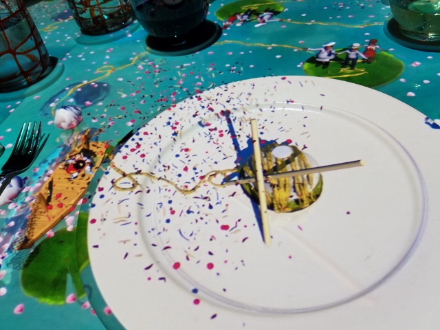 In 2011, two friends (Antoon Verbeeck with a background in fine arts painting and Filip Sterckx with a background in both directing and animation film) joined forces and founded Skullmapping in Leuven, Belgium. In response to a client’s query regarding a projection unto a tabletop for an upcoming event, Verbeeck and Sterckx came up with the concept of a small chef who cooks your dish on your plate. The client went with a different plan; but the two artists were excited about their initial idea and chose to develop it further. They produced a demo to show restaurants and events companies as they hoped to do one or two events using this idea. They wound up overwhelmed with emails and phone calls!!! Their program opened in restaurants all over the world.