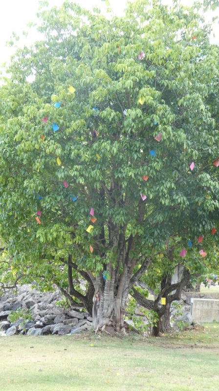 We have no idea why these colorful bits of paper are in the tree. But it is quite festive, isn’t it?!?