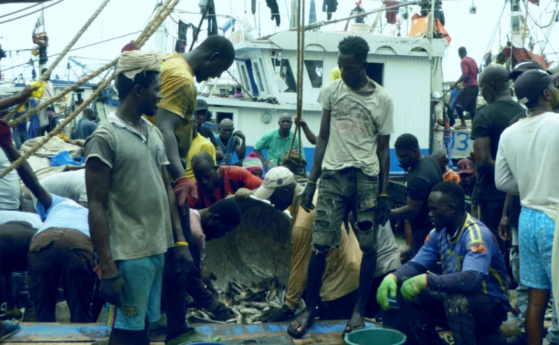 Next, we visited the Albert Bosomtwi Sam Fishing Harbor Fish Market.