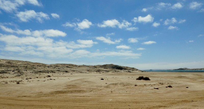 Walvis Bay is a natural, deep-water harbor. And the city of Walvis Bay is the largest coastal city in Namibia. We have been told the city center is charming, but we have not seen it. We should make it a point to do so. Especially since a shuttle makes it easy to get to the central business district!!! But we do enjoy the Lagoon with the beautiful flamingos. Then, as one walks along the promenade the homes are charming and set a nice neighborhood vibe. We enjoy the snacks and libations at the Raft Restaurant. We can find souvenirs at the craft market spread on the ground at the port gate. We feel comfortable in Walvis Bay and do not feel an urgency to explore. Perhaps we should. There is much more to see!!!