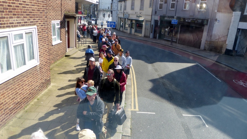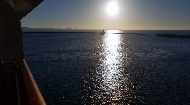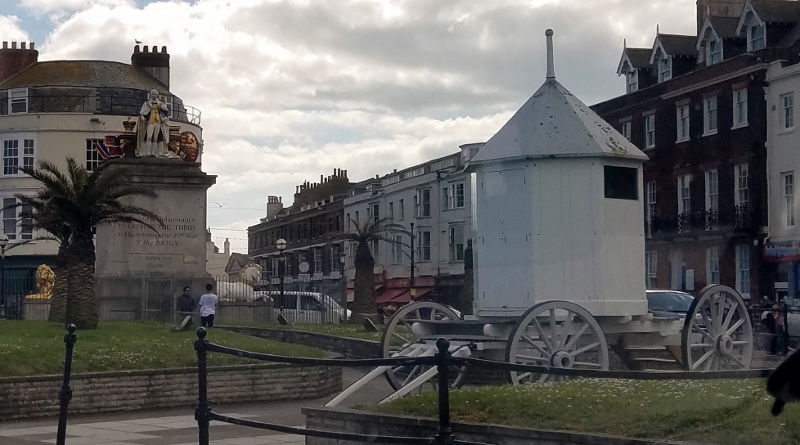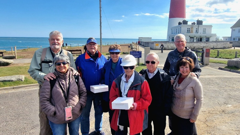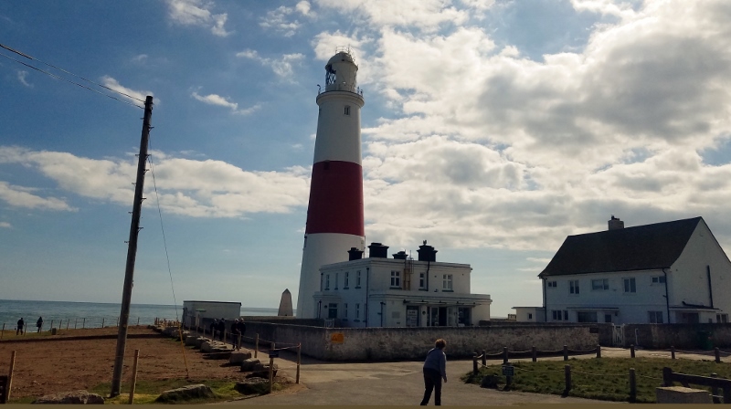As we departed the Cathedral, we were treated to a rehearsal by the Cathedral choir!!! Yes, that’s them at the front–look closely–we didn’t have to see them; we could hear their wonderful sound throughout the Cathedral. Now how wonderful is that!!!At this point, we headed back to Weymouth for a final look before continuing to Portland for our departure.The harbor is popular with its walkway, shops, and restaurants.But of course, the beach is the main attraction!!!And then, there’s George III and his First Bathing Hut. This column on wheels was used as a changing room for bathing in the sea. The King’s “people” would wheel him into the sea while he changed into bathing togs. After his dip; they would wheel him back out where he would emerge fully clothed and presentable!!!We departed Weymouth,…..…..entered Portland, and admired the the Portland Bill Light.We stopped at the Lobster Pot for their famous Cream Scones and Jam…..…..oh yeah, we took scones back to the ship to share with others!!!We say, ” goodbye” to Portland…..…..and sail away listening to a local choir as they sing songs of farewell.