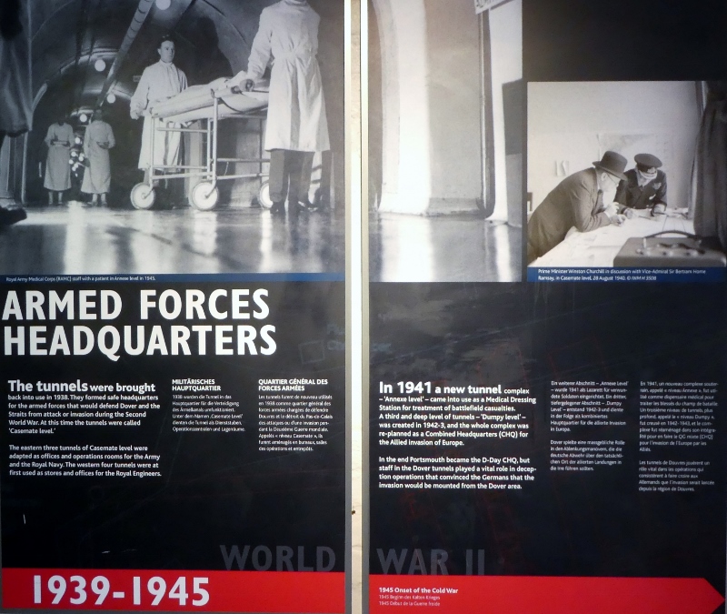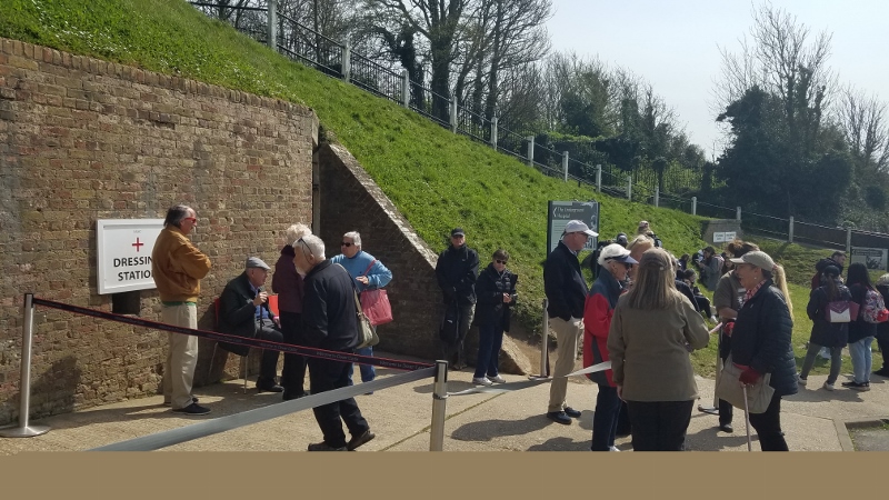 On Sunday morning we awake to the sight of the White Cliffs!!!We can see Dover Castle from the ship. Now Dover was not on our original schedule. We had no pre-planned activities in mind; so when the opportunity arose, we opted to tour the Dover Tunnels that figured so prominently in WWII.We took the ship’s shuttle to Dover Castle’s main gate and walked into the complex. The shuttle continued into town before returning to the ship and continuing the loop.The land now occupied by the Castle was, 2000 years ago, occupied by ramparts of an iron age hillfort constructed long before the Roman conquest of 43AD.These two buildings date from that period. The Roman Pharos (Lighthouse, right) was built by the Romans in 120AD. The Church of St Mary In Castro (Left) was built around 1000AD in a fortress constructed to defend against the Vikings.Now this is all very interesting, but we came to see the tunnels!!! There are two complexes. The Underground Hospital and the Operation Dynamo ( Rescue from Dunkirk). We started with Dynamo, the rescue /evacuation operation of 1940. This tells of the planning and execution of the perilous rescue operation to bring Allied troops back to England.We concluded with the Underground Hospital which tells the tale of a Dunkirk survivor, successfully receiving treatment in this facility. The rooms are all recreated with salvaged equipment and gear. (The same is true of the Dynamo facility)