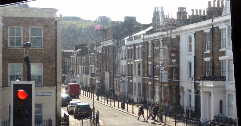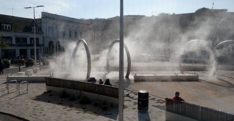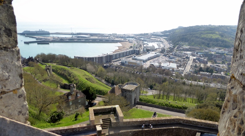 The complex is huge. It is a fortress, a castle, a museum, a park, and a national treasure!!!!From the Tower, we could see the ship.Time to board the shuttle!!!We never had a chance to tour the city of Dover. Obviously….next time!!!!At the Castle, we boarded an empty coach. Now, we are picking up more cruisers in town. These misting rings are unique to Dover and meant to be an attraction. One is encouraged to walk through the rings!!!Shortly after boarding the MS Zuiderdam, we set sail for our next port-of-call, Zeebrugge, Belgium.And we said, “good-bye” to the White Cliffs of Dover!!!