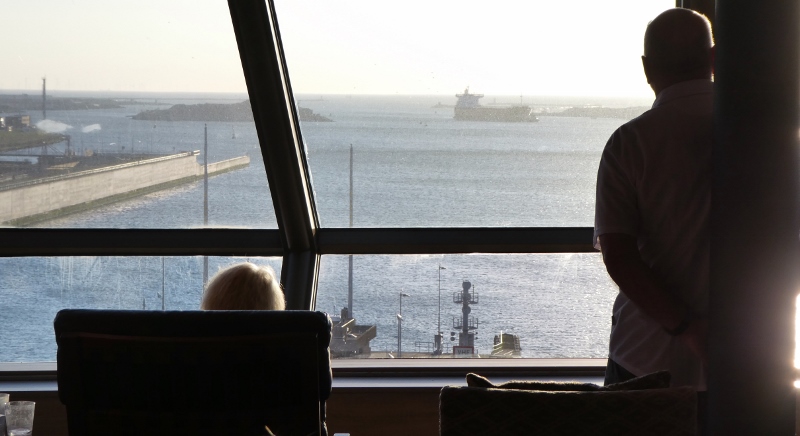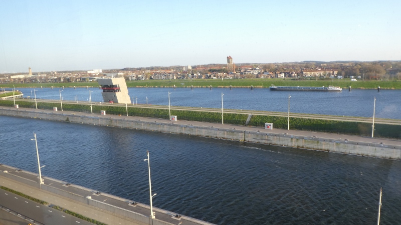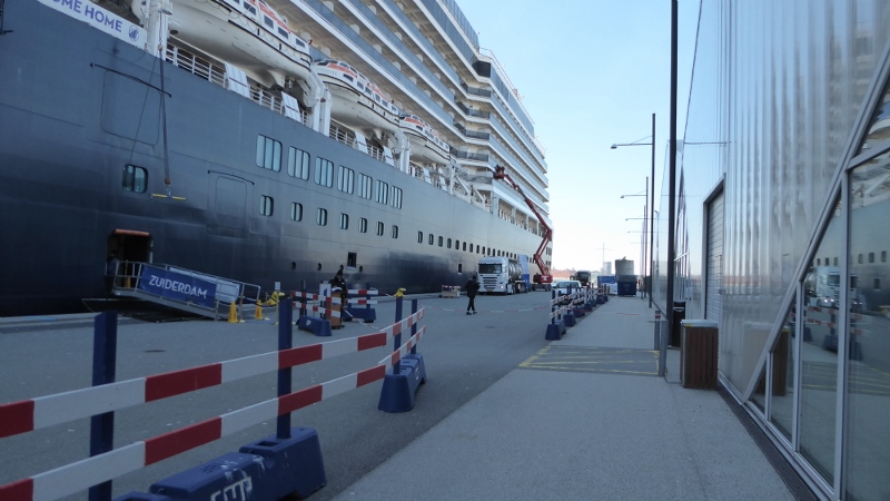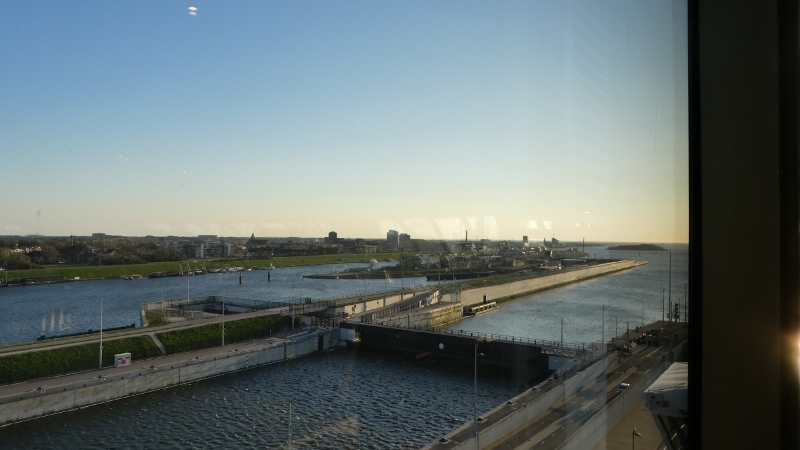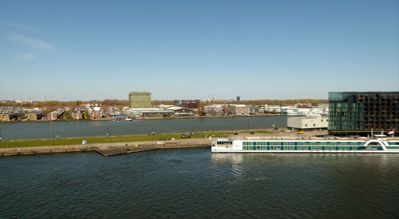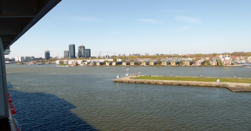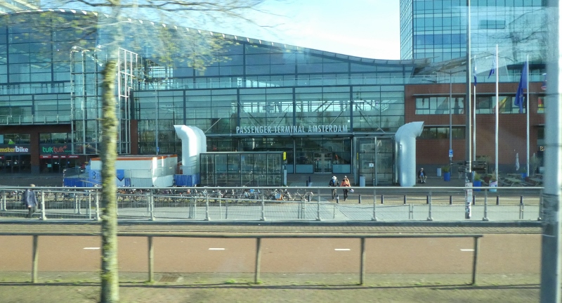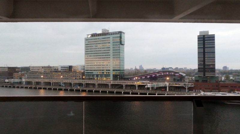 We awoke Tuesday morning to find ourselves in the canal leading to the dock in Amsterdam. This is always a lovely sail-in, as well as a great sail-out upon departure!!! But OK, we confess!!! We did not jump out of bed to take photos from the verandah!!! But we did manage to take a few photos of the cruise terminal, hotel, and unique office buildings just as the ship was pulling up to the dock.