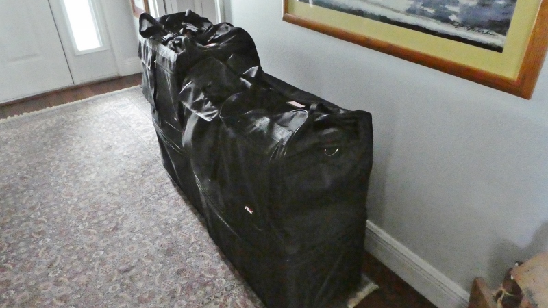 Of course, we must finish packing those 2 checked bags. The two San Diego overnights were quickly packed into the rollaboards. All we have left are the garment bags and 2 large suitcases.