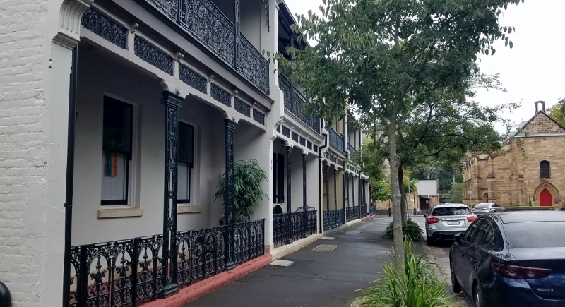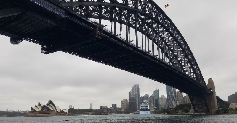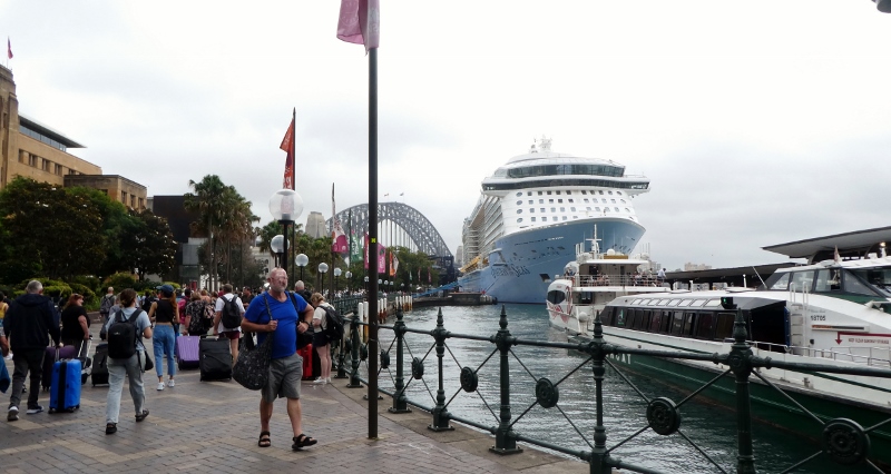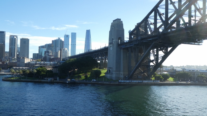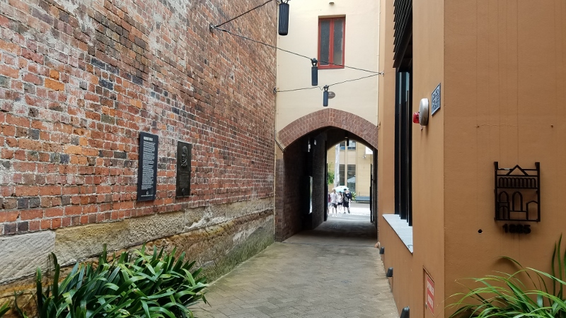 Our day in Sydney began at the White Bay Cruise Terminal.There, we exited the ship and boarded a shuttle to Darling Harbour.From Darling Harbour, we took a ferry to Circular Quay.We passed The Rocks area as we approached Circular Quay.Arriving in Circular Quay, we could see the tree-shrouded Rocks area….our destination for today’s adventure!!!!Reaching the Museum of Contemporary Art, we turned towards the stairs leading up to the Central Business District. From there, we were on our way to The Rocks, beginning our journey into history.We did not visit the art museum this time. But we do recommend it!!!At the street level, we could admire the modern architecture of Sydney.And then we reached our destination. When the First Fleet arrived in 1788, they established the first convict settlement on the rocks. Sydney was born.Note the wonderful architecture of the old area.The area is a series of lanes, passageways, and arches. This is the Nurse’s Walk. Two Sydney hospitals were located in this area from 1788 to 1816. The nurses were recruited from the convict population. They received no pay, but were supported at pubic expense.Named for Marine Captain Watkin Tench who arrived in 1788 with the first Fleet. This arcade honors his contributions to the written history of the new colony.This is the Garrison Church, built 1840-1846. It was known as the Holy Trinity Angilican Church and Hall. It was the first Garrison Church built in colonial Australia and remains in active service to this day.As the population of Sydney grew, Terrace Houses came into vogue. They were attached homes; compact; and were built between the 1850s and 1890s.