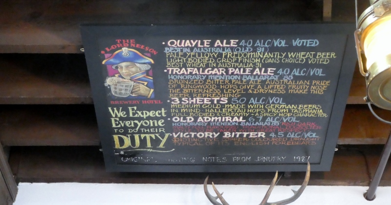 And, speaking of the Sydney Harbour Bridge, this is it!! Interesting bit of trivia: in 1814, convict & noted architect, Francis Greenway, first proposed a bridge at this location. Nothing happened.But by 1924, necessity and desire coincided and a contract was awarded to Dorman Long & Co. to build a bridge.The bridge was completed in 1932. Built in conjunction with the City Circle Underground tram, it consists of 6 lanes for traffic; two rail tracks; and a footpath.View from top (gun) deck of south east pylon of Sydney Harbour Bridge Date 20 November 2020, 14:06:20 Source https://www.flickr.com/photos/its_all_about_the_light/50632020338/ Author David Minty (Creative Commons Attribution 2.0 Generic)As our day drew to a close, we popped into the Brewery at the old Lord Nelson Hotel. Convict turned gentleman publican, William Wells, built the original structure as his home in 1836. But converted it into a hotel in 1842.This is a charming establishment!!!In 1986, a group of invstors bought the hotel and pub. By 1998, they had completed a major renovation, adding the microbrewery in the cellar. The license for the Lord Nelson has been continuous since that opening-day in 1841!!!