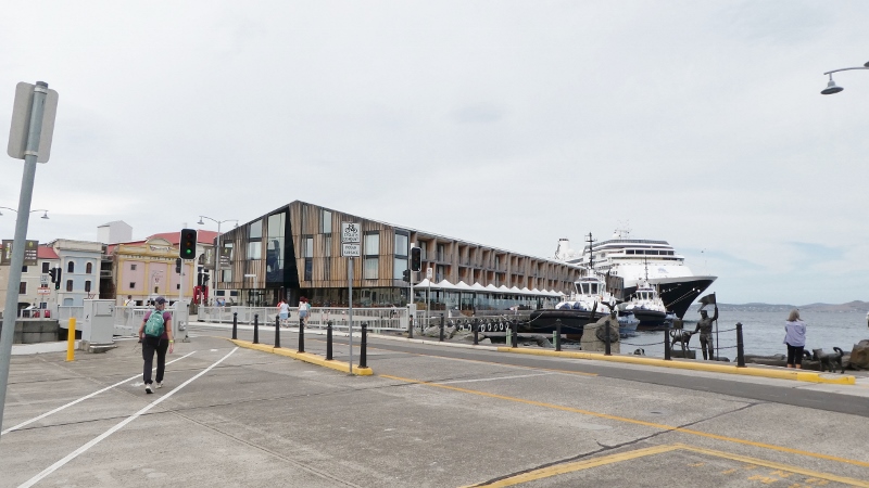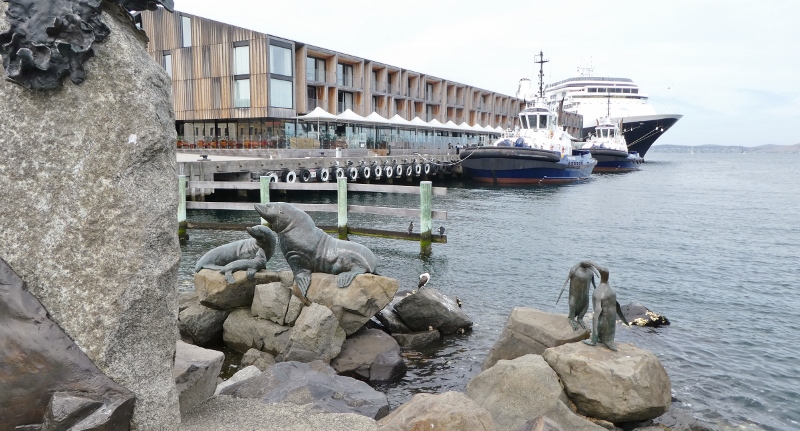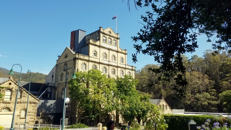 Hobart is the 2nd oldest city in Australia (Sydney is #1.) It was founded in 1804 by Colonel David Collins and has many Georgian & Victorian buildings surviving from the prosperous whaling days of the 1830s.The dock is conveniently located within walking distance of the Hobart attractions.A lot of interesting artwork may be seen along the shore.This tableau commemorates the exploratory voyage to Antarctica by Louis Bernacchi in 1888. Bernacchi was the first Australian scientist to overnight in Antarctica.Your Roving Raconteurs have been to Hobart several times. We’ve walked the town; viewed the annual regatta, visited the museums, dined in the restaurants, and sipped in the pubs!!!But until now, we had never visited the Cascade Brewery.Built in 1824, This is the oldest continuously operating brewery in Australia!!!Today, they not only brew beer, they produce ciders, sodas, and juices.We were told to “gear up, line up, and follow our guide thru the brewery.So we did.Photos were not allowed inside the brewery. So this is the last photo until we exit into the tasting room.Completing the tour, we make our way to the samples!!!They were ready for us and we got down to the business of tasting!!!We tasted all their beers including a side pour of the export stout.Sandy’s favorite was on the right– Cascade Lager–light, slightly fruity, with a crisp finish. Shifting to the left, the second was Roger’s fave-pick–Pale Ale–the oldest continuously brewed beer in Australia!!!We both agreed, the pale light bodied, hazy XPA with hints of pineapple, guava, & lychee, (seen here on the far right) was a definite UGH!!!After taking a short tour of the grounds and restaurant…..…..we went back to the shore…..…..for lunch…..…..before heading back to the ship and moving on to our next and last Tasmanian port–Port Arthur.