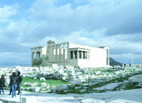 Previous Image Next Image 7-640×464-1 The Erechtheion was designed with two porches, one supported by female figures and the other by Ionic columns. The Eastern part is dedicated to Athena Polias while the Western side is deicated to Poseidon.