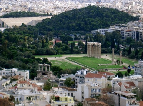 Previous Image Next Image 9-640×475-1 Hadrian’s Gate, Temple of Zeus, and the 1896 Olympic Stadium as viewed from atop the Acropolis