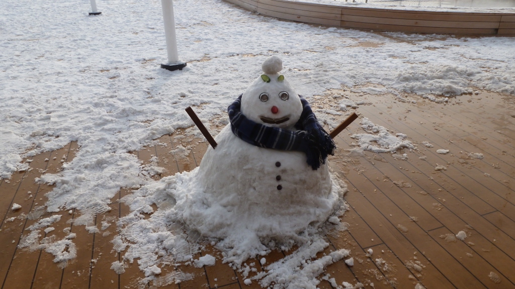 Previous Image Next Image p1230414-1024×576 Our dining room steward, Hendricks, was not alone is his fervent desire to see snow. They were all out there making snow angels, the snowman, having snowball fights! When you grow up in Indonesia, snow is an exotic sight.