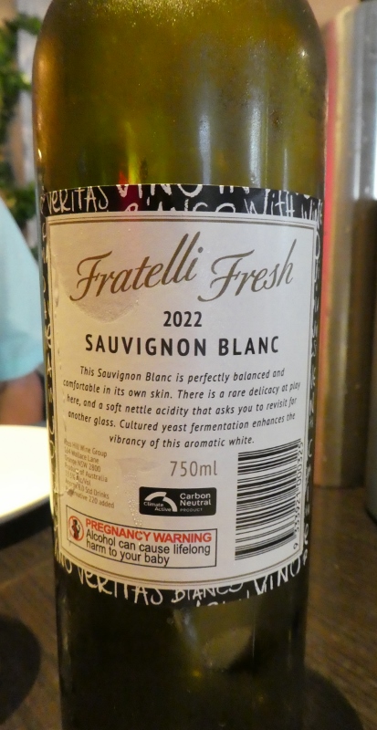 We chose the restaurant branded Sauvignon Blanc from Ross Hill Wines locally grown in Orange, New South Wales.