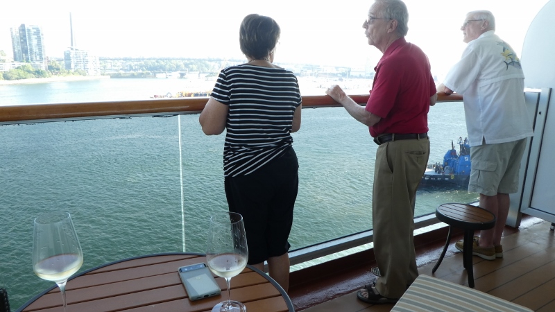 As an aside: that liner you see is the former MS Prinsendam!! She was bought by Reisen Travel of Germany and named Amera. We have very fond memories of voyages aboard that ship and were heartbroken when Holland America sold her!!! It was a surprise to see her docked beside us!!!