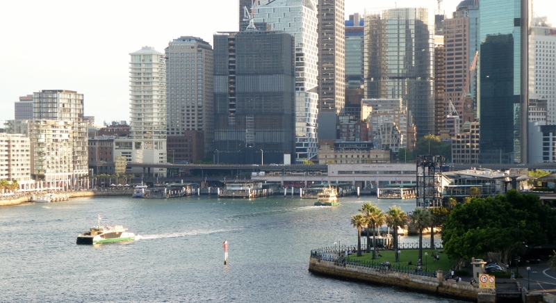 Undaunted by threatening skies, we set out for adventure!!! Boarding the ship-provided shuttle we transferred to Darling Harbor, closer to the central Business District. You can’t see any of that in this picture because White Bay is far away from everything!!!