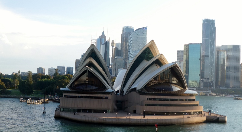 We are not sure why we awoke in the early morning hours of our entry into White Bay, the dockage for our 2-day lay-over in Sydney.  But waking when we did was fortuitous.  We were passing under the Sydney Harbor Bridge (aka the “Coat Hanger”) and we were jaw-droppingly amazed at the beauty and grandeur of this simple event.  The view was grand as our curtains were open on both the large balcony doorway and the window over the desk.  At this point, we were wide-awake and ready to face the day!!!  We dressed and went to the Crow’s nest for coffee as we decided this day would be for shopping and eating.