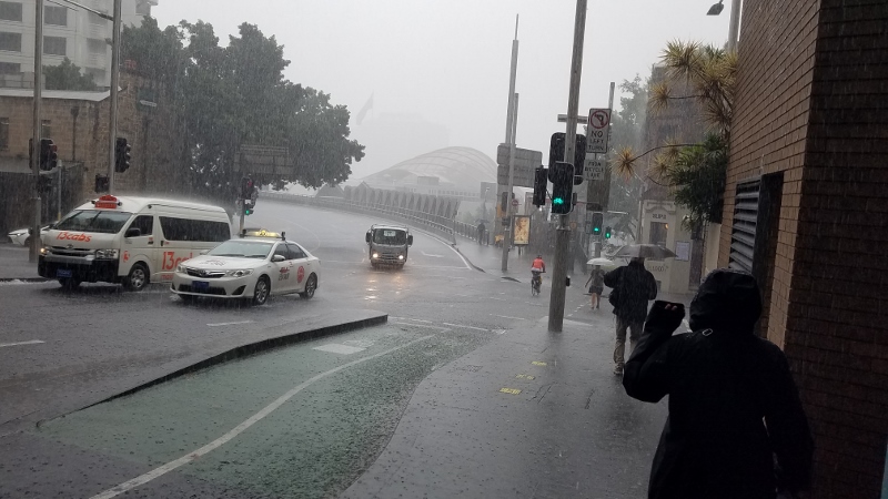 After our foray at David Jones, we went to PJ O’Brien’s for an Irish lunch with brew. As we left the restaurant, the rain started. And it fell, and fell harder, and became a deluge!!!